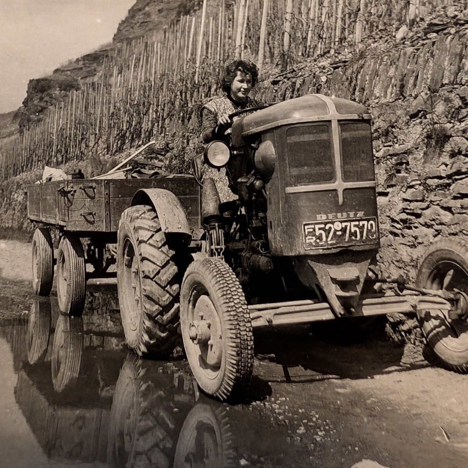 Jessikas Großmutter Brigitte auf ihrem ersten Traktor